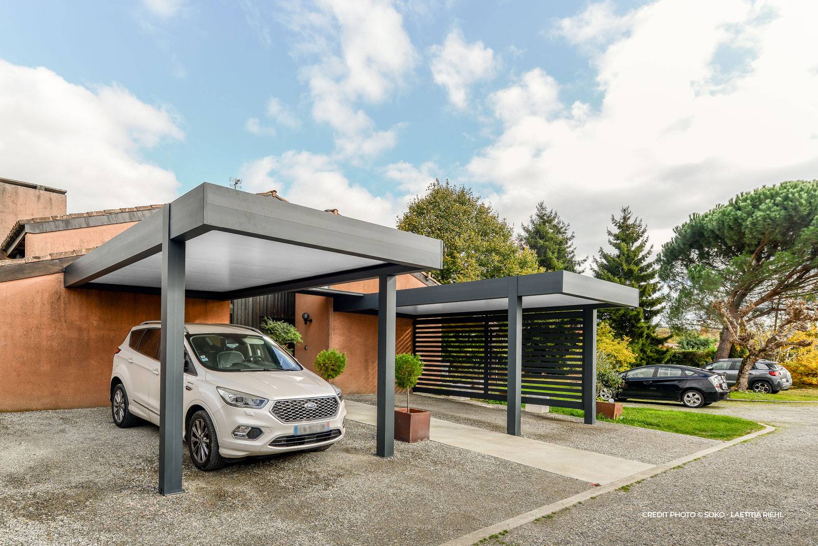 Le carport, solide et esthétique, offre une protection efficace pour votre véhicule tout en s’intégrant harmonieusement à votre extérieur. Nous travaillons exclusivement avec des matériaux de haute qualité, installés par des experts qualifiés. Homkia Rénovation Durable propose également des carports photovoltaïques, alliant protection et production d’énergie.