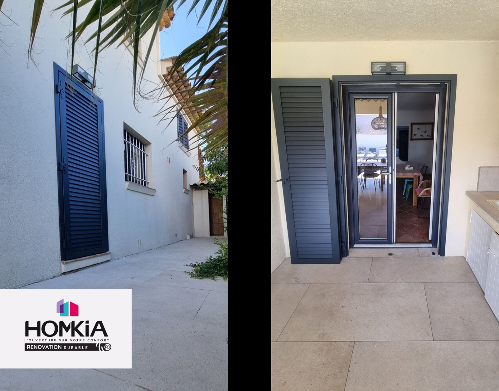Homkia Rénovation Durable a installé des volets et un portail en aluminium près de Toulon, dans le Var. Ces équipements offrent durabilité, isolation, et un design moderne parfaitement adapté à la villa. Demandez un devis dès maintenant pour un projet sur-mesure en région PACA.