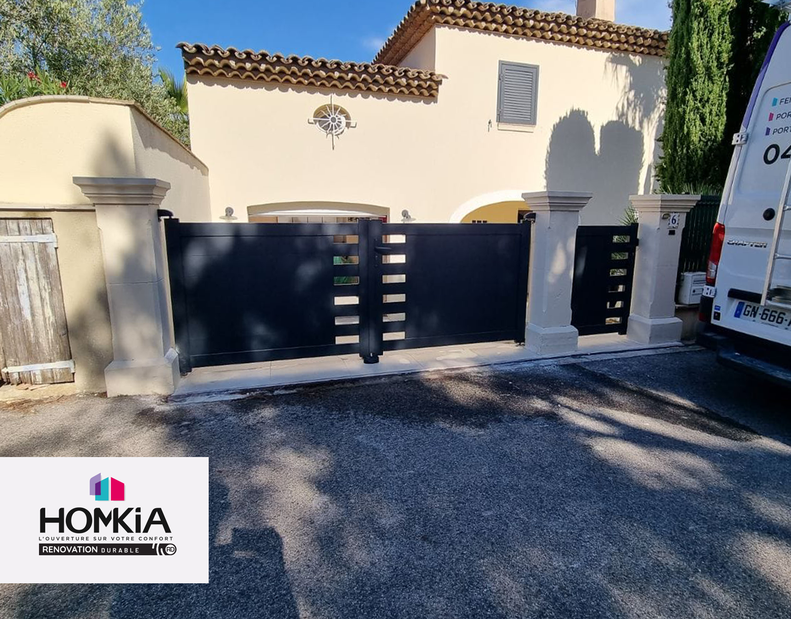 Découvrez la rénovation réalisée par Homkia Rénovation Durable chez un particulier près de Toulon, dans le Var (83). Nos experts ont été chargés de la pose de volets et d’un portail en aluminium, offrant à cette villa un nouveau style et des performances accrues.