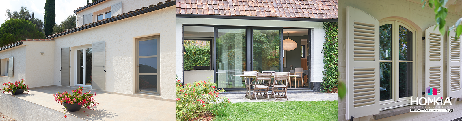Chez Homkia Rénovation Durable, nos équipes possèdent l’expertise pour installer vos menuiseries intérieures et extérieures : Fenêtres, portes-fenêtres, baies vitrées, volet roulants, clôtures, portails, portes de garage ou encore stores motorisés.